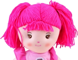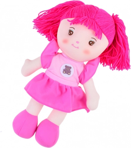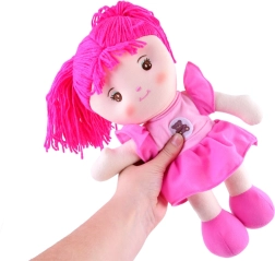 Denne klassiske tekstildukke vil glæde ethvert barn. Den er syet af behageligt, blødt materiale, har broderede ansigtsdetaljer og et matchende rosa sæt med kjole og sko. Den er let, ligger godt i små hænder og indbyder til kram.
