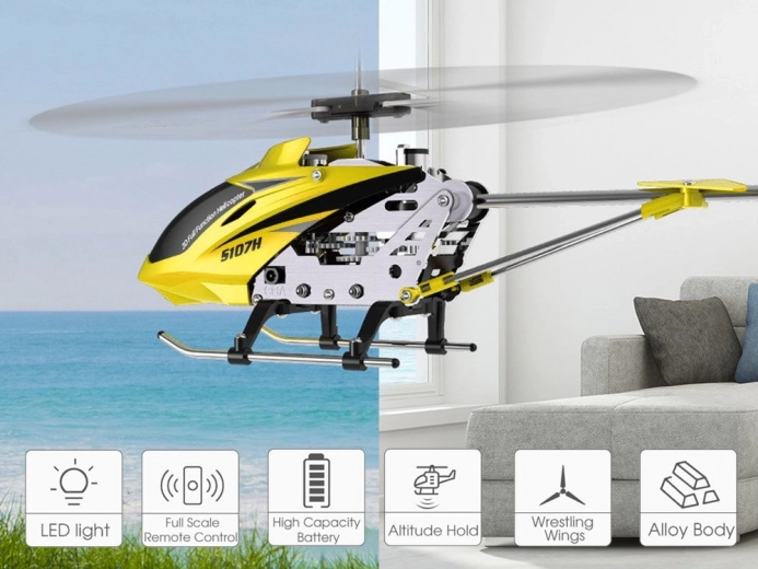 SYMA S107H tilbyder en fremragende balance mellem holdbarhed og enkelhed. Metalkonstruktion med ABS-plastdele forlænger levetiden ved fald, mens den intelligente GYRO-stabilisering automatisk kalibrerer modellen ved opstart og sørger for stabil start og flyvning. Takket være koaksiale rotorer og den lodrette bagrotor er styringen præcis og jævn – perfekt til indendørs brug.