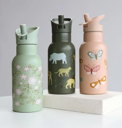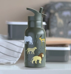 Den robuste og lette flaske i rustfrit stål med et legende savannemotiv hjælper børn med at holde en god drikkerutine hele dagen. Takket være dobbeltvægskonstruktionen holder den drikken ved den ønskede temperatur længere, og den behagelige tud med sugerør gør det nemt at drikke på farten og i skolen.
