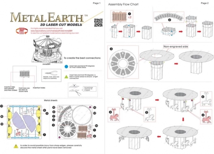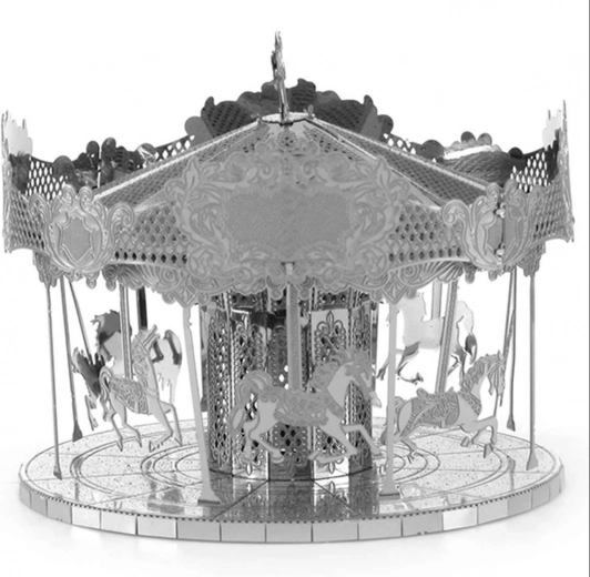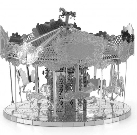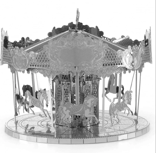 Oplev charmen ved klassiske markeder i miniature. Karruselmodellen fra METAL EARTH-serien er præcist udført af stålplader med fin lasergravering, som giver realistiske detaljer på heste, tag og dekorative paneler. Samlingen kræver tålmodighed og sikre hænder, men belønningen er en markant designdekoration, der pryder både hylde og skrivebord.
