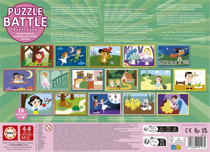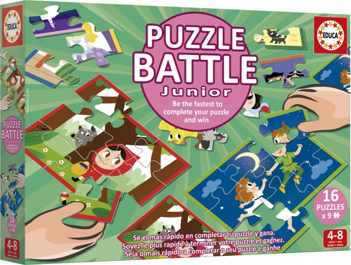Oplev en spændende puslespils-battle med serien Educa – hurtig lægning, sjov og læring i ét. Sættet indeholder 16 mini-puslespil à 9 brikker og 16 forlægskort, ideelt til duel med venner eller familie. Understøtter hånd–øje-koordination, hastighed, tålmodighed og iagttagelsesevne.