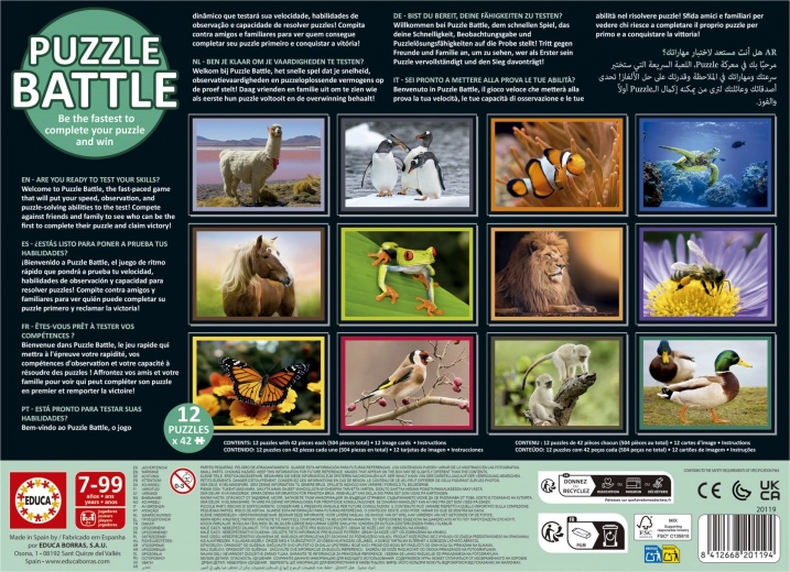 Nyd spændende underholdning med EDUCA puslespilskamp på temaet natur. Kombinerer klassisk lægning med fokus på hastighed og konkurrence – udfordr venner, søskende og forældre og find ud af, hvem der samler billedet hurtigst. Et fremragende valg til at udvikle øje-hånd-koordination, tålmodighed, opmærksomhed og koncentration.