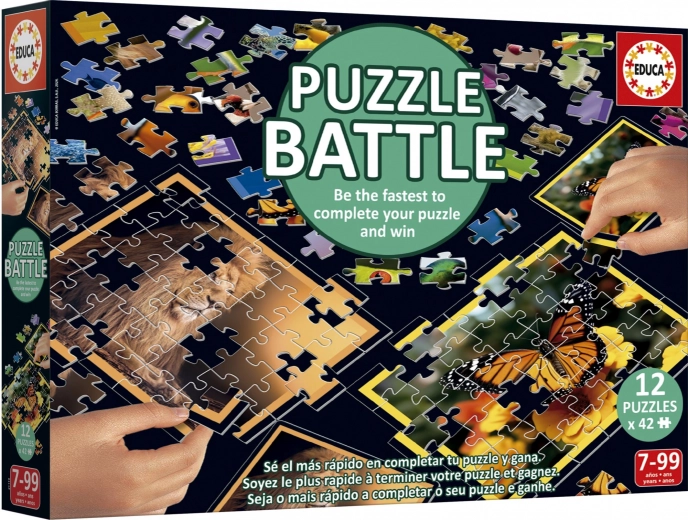 Opdag det unikke puslespilskamp-koncept fra EDUCA. I æsken finder du 12 separate mini-puslespil, hver med 42 brikker, samt 12 forlægskort. Ideelt til korte konkurrenceprægede runder og lange eftermiddage fulde af familiehygge.