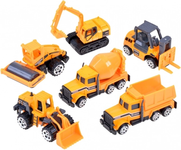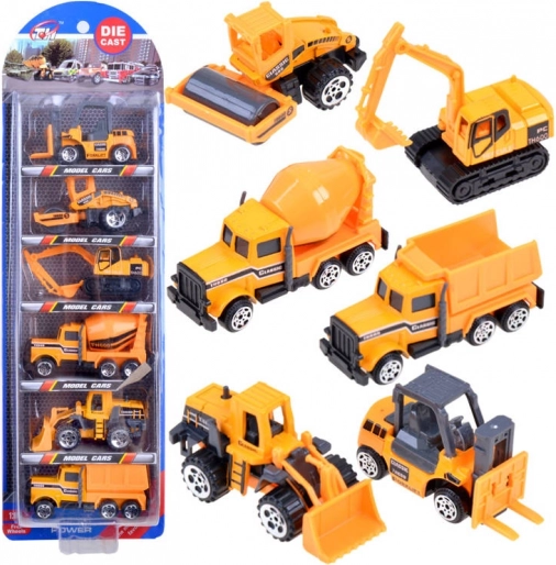 Dette sæt indeholder seks mini-byggekøretøjer, ideelle til små bygmestre. Metalkarrosseri kombineret med plastdele, der kan bevæges, sikrer lang levetid og et attraktivt look. Takket være gennemtænkte farver og grafik virker modellerne realistiske og passer perfekt ind i enhver børneverden.