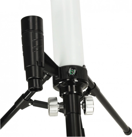 Der medfølger også en smartphone-holder, som gør det muligt at se billedet på skærmen, tage billeder og videoer og dele de fantastiske øjeblikke med familie og venner. Det indbyggede kompas hjælper børn med hurtigt at orientere sig og rette teleskopet i den rigtige retning.