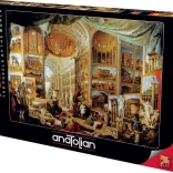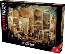 Puslespilsentusiaster og kunstelskere vil finde glæde i at sætte dette smukke puslespil Interiør af en imaginær billedgalleri sammen. Det færdige puslespil måler cirka 66 x 48 cm, hvilket giver rigelig plads til detaljer og farver.