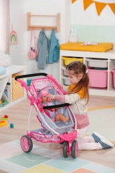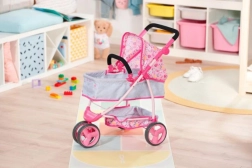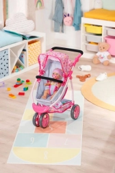 Denne kombinerede dukkevogn er den ideelle ledsager for små plejere og deres dukker. Takket være muligheden for at ændre til sportsversion kan dukken nyde køreture i forskellig position. Vognen har en kaleche, der kan foldes let ned for solmuligheder, og et rummeligt opbevaringsrum til alt nødvendigt på gåturen – fra tøjdyr til skatte samlet op udenfor.