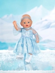 Det elegante sæt til BABY born-dukker 43 cm bringer vinterkongerigets magi ind i hverdagslegen. Den lette, glitrende kjole med fint overkast er nem at tage på, og med diademet bliver frisuren på plads under hver piruet. De hvide sko i skøjtelook støtter fantasien og børnenes historier om kunstskøjteløb.