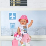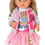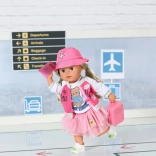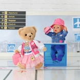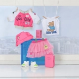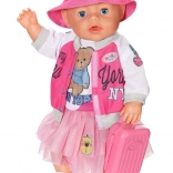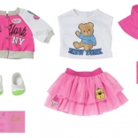 Forkæl din BABY BORN dukke med det perfekte rejseoutfit. Dette lyserøde sæt kombinerer komfort og stil – fra en let jakke med det ikoniske NY-motiv og en legesyg T-shirt med bamse til et luftigt tylskørt og behagelige sko. Medfølger gør også en sød lille kuffert og et rejsepas til realistiske legescenarier.
