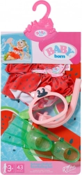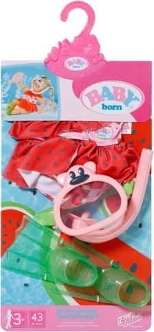 Dette sjove tilbehørssæt forvandler hvert dukke-bad til et lille eventyr. De farverige badedragter med vandmelonmotiv, lette svømmefødder og den komfortable snorkelmaske passer perfekt til BABY born-dukker på 43 cm og fremmer fantasi og kreativ leg.