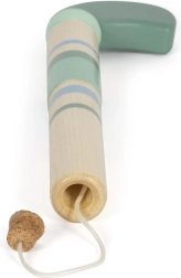 Denne kvalitetsforarbejdede træprop-pistol kombinerer et naturligt udseende med blide farver og indbyder til aktiv leg både hjemme og ude. Takket være det fastgjorte korkprojektil på en snor bliver intet væk, og børn kan øve præcision og reaktion igen og igen.