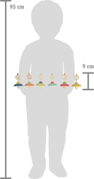 Massivt træ kombineret med klare farver ligger godt i hånden, er holdbart og sikkert til daglig leg.