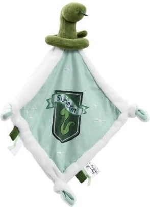 Det er endnu hyggeligere at kramme med denne magiske nusseklud. Den bløde plyskammerat med Slytherin-emblem, slangens hoved og broderede stjerner tilbyder skånsom taktil stimulering takket være knudede hjørner og labels. Den er lavet af kvalitetsplys, ekstra blød, egnet fra fødslen og perfekt som gave til små HARRY POTTER-fans.