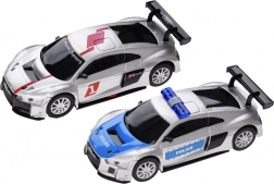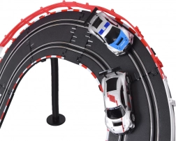 Ekstra lang racerbane er enhver lille rally- og bilfans drøm. Banen med en længde på ca. 8 m med to biler, skarpe stigninger og sving giver masser af spænding under legen. De to superhurtige biler med Audi-licens er fremstillet med stor sans for detaljer. Hele sættet præsenterer sig meget imponerende.