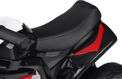 Fremdriften varetages af en 6 V motor med et 6 V 4 Ah batteri. Motorcyklen sættes i gang ved at trykke på speederpedalen, og når den slippes, aktiveres den elektriske bremse for sikker standsning. Plasthjulene kræver minimal vedligeholdelse, og det komfortable, formede sæde med økolæder sikrer behagelig kørsel selv på længere ture.