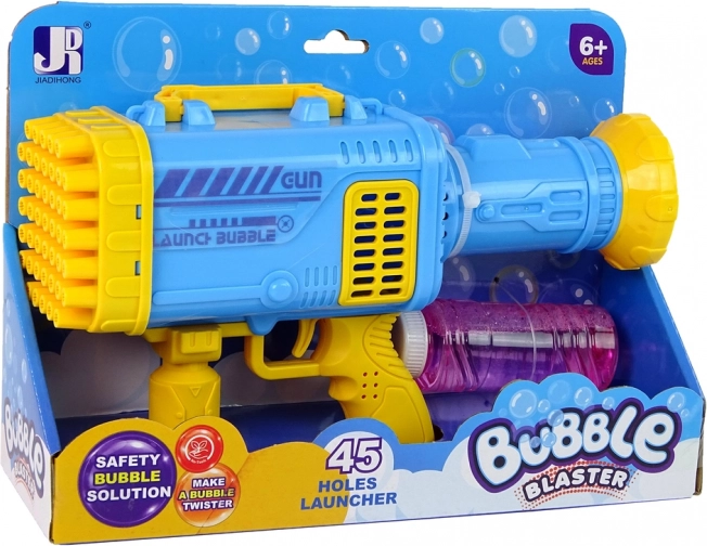 En sjov bazooka-inspireret sæbeboblepistol skaber på én gang snesevis op til hundreder af bobler. Takket være 45 åbninger, ergonomisk greb og nem aftrækkerbetjening er den ideel til udendørs leg. Medfølger 150 ml reservesæbe; sikker drift bekræftet af CE-certificering og overensstemmelse med EN 71.
