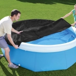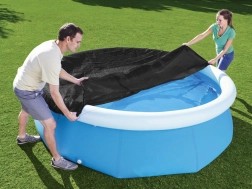 Vælg en smart løsning for renere vand og mindre vedligeholdelse. Overtrækket er velegnet til runde fritstående bassiner med oppustelig kant med en diameter på 244 cm (Fast Set-serien). Den kompakte pakning er let at opbevare og egner sig også som gave.
