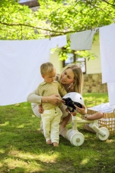 Sædet på løbecyklen MoMi DEX har to højdeniveauer for perfekt tilpasning til barnets behov.