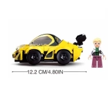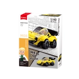 Byggesættet indeholder en model af en gul sportsvogn med en længde på 12,2 cm til sjov racerkørsel.