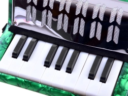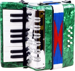 Dette Harmonia børne-accordeon er omhyggeligt og æstetisk udført for at give børn en autentisk musikalsk oplevelse. Spilleprincippet er det samme som på et rigtigt accordeon – lyden opstår ved at trække og presse bælgen, mens man samtidig trykker på tangenter og knapper. De rene og behagelige toner motiverer børn til at udforske musikkens verden yderligere.