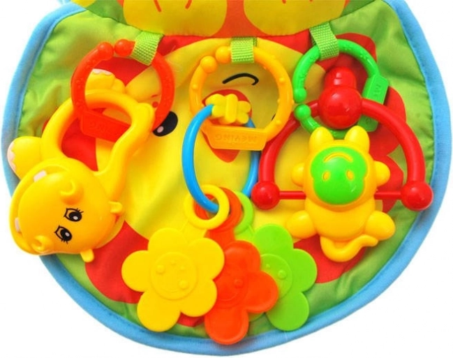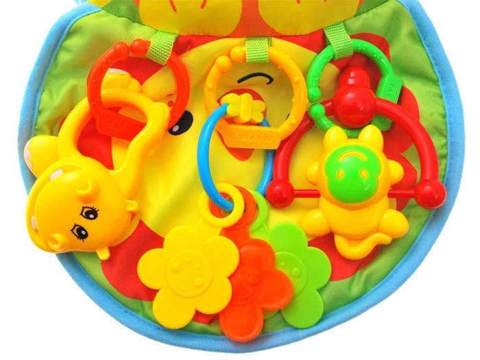 Den farverige, knitrende mini-måtte og aftagelige rangler understøtter udviklingen af syn, hørelse og finmotorik.