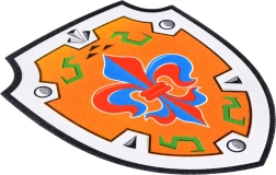 Skjoldet prydes af et markant våbenskjold med en lilje, som stimulerer børns fantasi og forvandler enhver leg til et ridderligt eventyr.