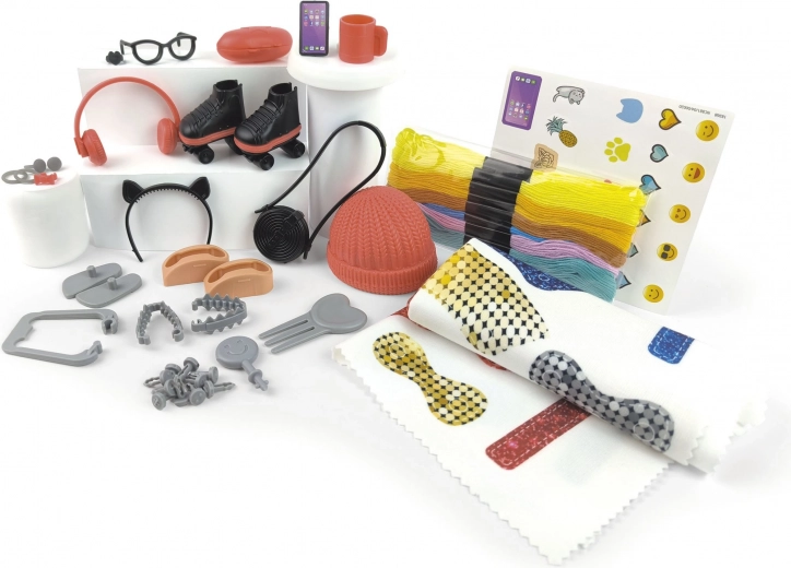 - Sammenbyggelig dukke, stof med fortrykte skabeloner 61 × 32 cm, modetilbehør, tråde til hår, hulstanse til tøj, tilbehør, billedvejledning