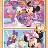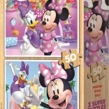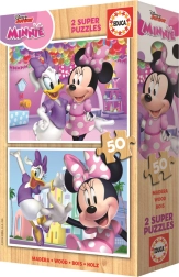 Denne sæt giver dobbelt så meget sjov: i æsken finder du 2 puslespil med 50 brikker, hver med samme mål efter samling ca. 26 × 18 cm. Trækonstruktionen er naturlig, robust og holdbar, så den tåler hyppig brug. De attraktive motiver af de populære figurer MINNIE og DAISY motiverer børn til gentagen leg.