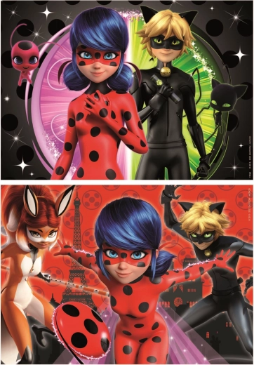 Opdag kvalitetsbørnepuslespil fra EDUCA med de populære helte fra serien Miraculous: Ladybug og Sorte Kat. Pakken indeholder 2 puslespil med samme antal brikker og samme mål efter samling – ideelt til søskende eller gentagen leg.
