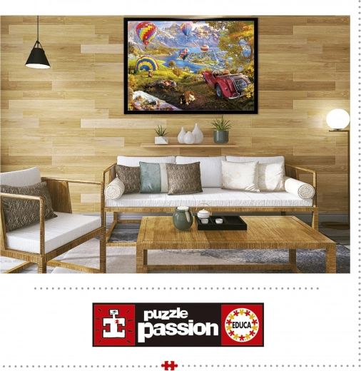 Dette storformat-puslespil byder på timevis af fokuseret underholdning for krævende puslespilsentusiaster. Den rige farvepalette, det detaljerede landskab og de kontrastfyldte elementer – fra efterårstræerne over søen til ballonerne på himlen – gør det nemmere at orientere sig og gør samlingen mere flydende og underholdende.