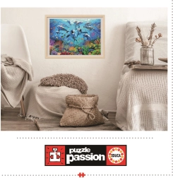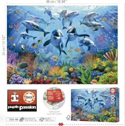 Gå på undervandseventyr! Puzzle Sjov under Havet tilbyder dig 500 brikker fyldt med en farverig verden under havoverfladen. Nyd mere sjov med den medfølgende gratis lim til nem opbevaring af det færdige billede.