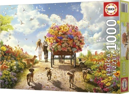Nyd timer med sjov med puslespil Blomsterrutens levering fra mærket Educa. Indeholder 1000 brikker til krævende samling og gratis lim til at bevare det færdige værk.