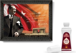 Motivet Atatürk og Anıtkabir giver indretningen et markant og kultiveret præg, og det færdige værk på ca. 68 × 48 cm gør sig flot på væggen.
