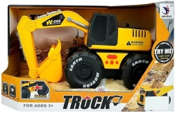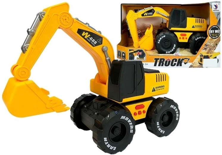 Realistisk gul-sort gravko til børn fra 3 år med friktionsdrev, lyseffekter og lyde af horn og bakning. Det bevægelige arm- og skovlsystem understøtter kreativ leg på byggepladsen. Fremstillet af kvalitetsplast, sikker og holdbar, med CE-certificering og standarden EN 71.