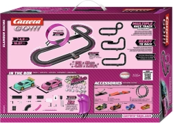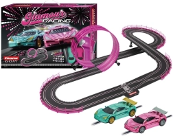 Oplev sjov med dette høj kvalitet racersæt Carrera GO!!! Glamour Racing. Sættet inkluderer to biler med smuk metallisk glans og controllere i unikke farver. Banen er 4,9m lang og inkluderer forskellige dekorative elementer og dele til banekonstruktion.