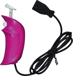 Lyserøde plastikcontrollere med sort ledning og udløser til præcis hastighedsstyring.