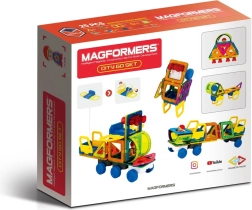 Dette sæt tilbyder op til 18 bygge-modeller af køretøjer med brug af farverige dele, der er lette at samle takket være det magnetiske system.