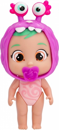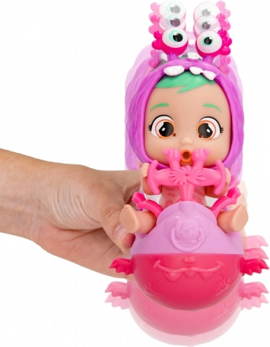 Når dukken fyldes med vand og maven trykkes, begynder den at græde farvede gelétårer, hvilket giver en realistisk legeoplevelse.