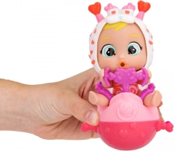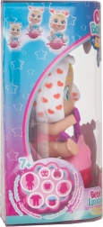 Dukken Momo giver børn endeløs underholdning takket være sine interaktive funktioner. Hun er klædt i en farverig silikonedragt med monster-motiv og har særlige evner, som giver legen realisme. Fyld flasken med vand, giv dukken at drikke, og ved et tryk på maven starter et magisk show i form af farvede tårer. Disse tårer kan børnene derefter bruge til endnu mere sjov med hendes hoppe-løbehjul.