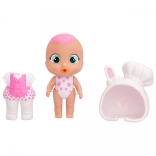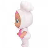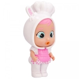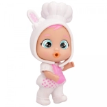 Oplev Coney fra Cry Babies Magic Tears Stars Talent – en lille bager i en blød silikonedragt med hætte og kaninører. Takket være bedre bevægelighed i leddene kan hun nemt sættes, stilles op og indgå i kreative legescenarier. Når flasken fyldes med vand og maven trykkes blidt, græder dukken ægte tårer, hvilket hjælper børn med at opleve og udvikle følelser.