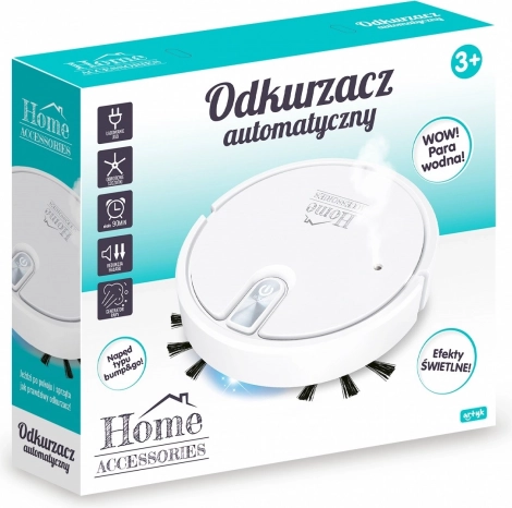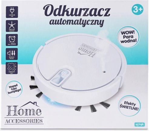 Legetøjs-robotstøvsuger med dampegenerator vil glæde små hjælpere i hjemmet. Den tilbyder realistiske funktioner som luftsuget, lyd som en rigtig støvsuger, roterende børster og oplyst on/off-knap. Takket være aftageligt kammer med filter og automatisk bump ’n’ go-bevægelse føles legen autentisk og sjov.
