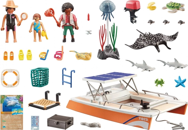 PLAYMOBIL WILTOPIA: udforskning af koralrevet. Katamaran med glasbund, soltag, havdyr. Bæredygtigt byggesæt.
