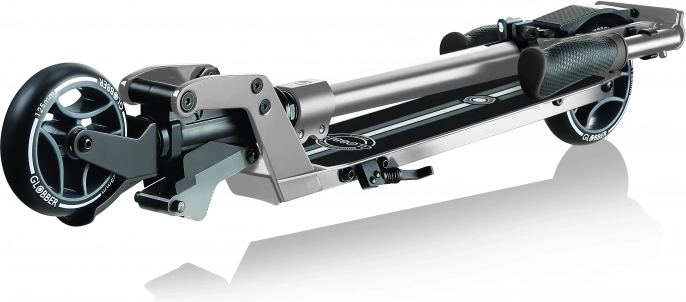 Globber One K 125 er et praktisk sammenklappeligt løbehjul til bekvemme ture i byen og til skole. Takket være den lette og stærke konstruktion af stål og aluminium, lav vægt på 4,21 kg og de kompakte mål efter sammenklapning 86 × 14 × 14,5 cm, kan du nemt tage det med i offentlig transport eller opbevare det derhjemme.