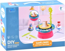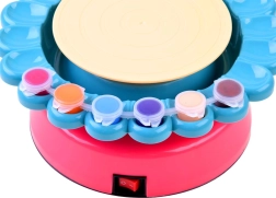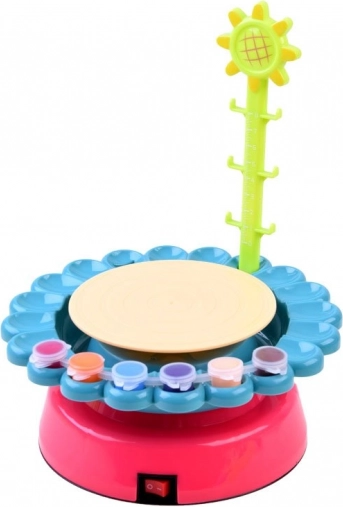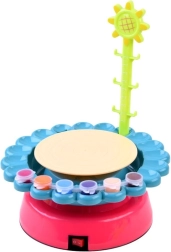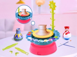 Keramik-sættet er en fremragende gaveidé til børn, der elsker at bruge tiden kreativt. Legetøjet er ideelt til alle, der kan lide manuelt arbejde og ikke er bange for at blive lidt beskidte. Med denne fantastiske maskine kan du trylle interessante ting frem af ler (f.eks. vaser, kander, urtepotter, tallerkener, krus) og dekorere dem med plastknive, pensler og farver. Den beskyttende forklæde er designet til at forhindre overdreven tilsmudsning af den lille kunstner.