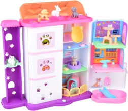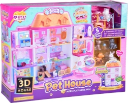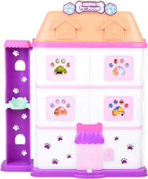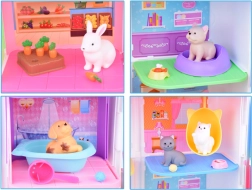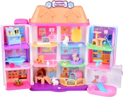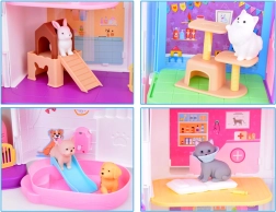 Huset byder på 11 gennemtænkte rum, en elevator med kurv, en terrasse med pool og rutsjebane samt en dørklokke for en endnu mere realistisk leg. Der medfølger gummifigurer (2 hunde, 2 katte og en kanin) samt masser af tilbehør – fra badekar og skåle, over senge og kradsetræer, til undersøgelsesbord og hospitalsseng.