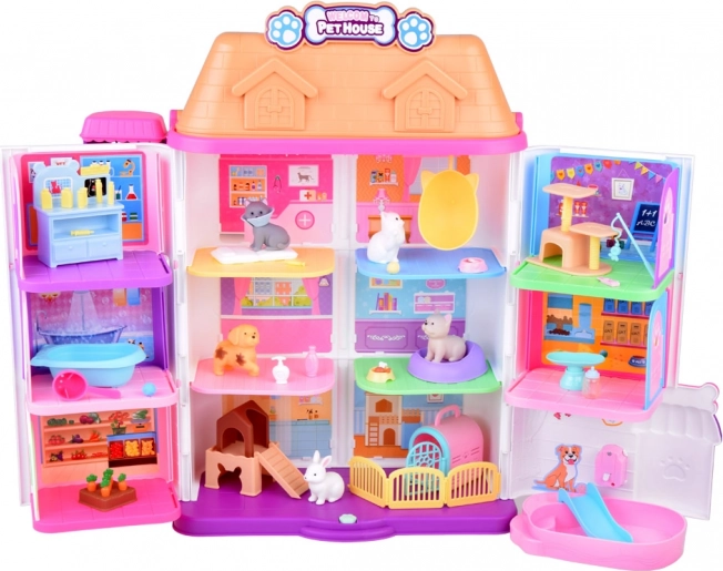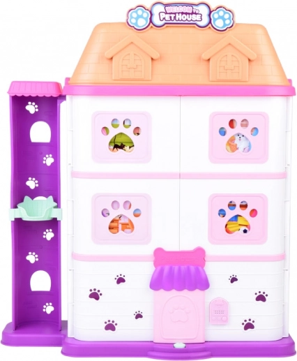 Det sammenklappelige kæledyrshus Pet House forvandler børneværelset til en farverig verden af dyr. Det byder på 11 rum, funktionel elevator, tagterrasse med pool og realistisk dørklokke. Et rigt sæt med figurer og tilbehør samt mulighed for nem montering og ombygning udvikler både fantasi og finmotorik.