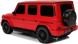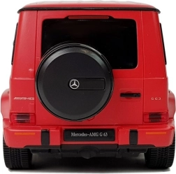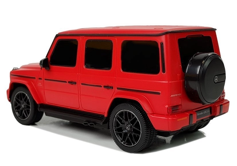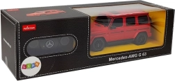 Den viste model er en MERCEDES AMG G63 i rød, perfekt gengivet efter den realistiske modpart. Den er lavet i skala 1:24, chassiset er fremstillet af forstærket plast, gummihjulene efterligner dæk, og bilens affjedring er dæmpet.