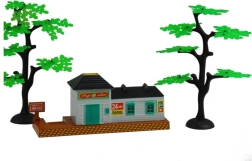 Pakken indeholder en station, træer og tilbehør, som beriger legen og gør det muligt at bygge egne jernbanescenarier.