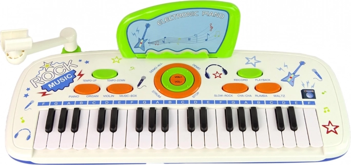 Dette lille klaver forener fantastisk underholdning med musikkens verden. En fremragende idé til at udvikle barnets musiske talent, hørelse og fantasi. Barnet udforsker lyde, instrumenter og toner og udvikler sine musikalske evner. Hørelsen og rytmesansen styrkes, og man glemmer frygten for fremmede.