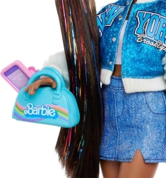 Barbie Dream Besties “Brooklyn” er klar til at stråle på dansescenen. Hendes glitrende blå jakke, denimnederdel og stilfulde højhælede sko skaber et markant New York-look, der stimulerer børns fantasi. Det lange mørke hår med farvede striber er ideelt til at rede og style frisurer.